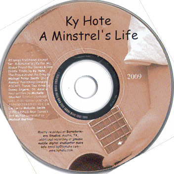Noted Songwriter and Guitar player Ky Hote recently released his first album of mostly traditional and instrumental music. "A Minstrel's Life" features thirteen songs in the public domain, three songs that are composed by Ky Hote and also songs by Michelle Shocked, Michael Peter Smith and Donna Stjerna of the Folkgrass duo, Still On the Hill. The completely instrumental selections include one completely improvised tune featuring the Dangerous Guitar Playing of Ky Hote. Imagine if you will... strolling down the lane in a time where electricity and motor vehicles are non-existent. The printed word is still a wealthy person's realm and there is no television or internet! Life is hard and pleasures few, but you might come across a crowd of people listening to a minstrel such as Ky Hote. His songs and stories bring the news from far away lands and his humor helps the day go by. Ky Hote has been called The Most Dangerous Guitar Player at Renaissance Festivals across the United States. While other guitar players rely on open tunings and amplified effects, Ky is out of the box with his adventurous arrangements of Celtic, Gypsy, Old Timey American tunes as well as the improvisations of his muse. He is featured in the hammered dulcimer band Featherstone and fearlessly leads a power-celtic group, Celtic Stronghold. Listening to A Minstrel's Life is much like running across Ky Hote in the lanes of a Renaissance Faire. It will surprise you, make you laugh and bring comfort to your heart with its familiarity. Here is what fans and contributors have said after receiving their copy: "A Minstrel's Life. Great job! You've really kept the 4/4 troubadour spirit alive!" ...Michelle Shocked "Your version of These Two Arms is just beautiful. Donna is so thrilled that you chose to record it. Really good picking and it takes you on quite a journey. Wonderful!" ...Donna Stjerna and Kelly Mulhollan of Still on the Hill "The humor and songs are great and the guitar work makes my ears smile. It's a very satisfying listen." ...Daren Appelt "I have... had head space time to take a listen and it is wonderful. I am transported much of the listening dreaming inside movie time to Ireland. My favorite place to tour with the music. I've been over there many, many times and just love the people and the street music and classic Irish music.... You have such a heart and precise simplicity that I would embrace, even if we weren't such old friends and mentors of each other. Thank you for continuing to expand your gift and talent and sphere of love." ... Rex Foster "Your CD came today. Sounds awesome. Would love to have you onboard (for our) 2011 opening." ... Kris Sabbatino, co-producer of Flagler-Palm Coast Renaissance Festival "HOW FUN! WE FELT LIKE WE WERE AT FESTIVAL" ...Leah LaChapelle, author, radio show host "have very much found the cd to be of life and warmth. have not grown tired of or feel that i will anytime soon. thank you much and continued success to your multiple musical endeavors and the joy and freedom you bring to it. it is hard to find freedom in the chains of life but when they start clanging just right it is quite beautiful isn't it." ... Monk E. Wilson "'The Princess and the Frog' is my favorite. I've been listening to your CD back and forth from work for days *grin* " ..... Heidi Bolton " 'A Minstrel's Life' sounds like Spring." .... Suzanne Teshera |
