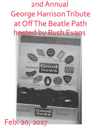 Exhausted by Beatlemania and always being in the limelight, Harrison spent much his life living quietly with his wife Olivia and son Dhani. He founded Handmade Films to produce Monty Python's Life of Brian. Harrison never failed to appreciate laughter and even during his most devotional periods he included jokes in his album covers. Known for his affinity with the Krishna Consciousness Movement, Olivia Harrison said this about him, "he embraced the essence of all religions… he would gladly spend hours discussing God with an interested person." We play songs from his whole career and demonstrating his integration of Indian music and western pop. We try to have some old vinyl artifacts as well. The first four Tributes ended with a medley of Brainwashed, including the lovely chanting that it finishes with, followed by My Sweet Lord. Other musical highlights include Isn't It A Pity featuring Guy Forsyth on vocals and saw, Give Me Love (Give Me Peace On Earth) arranged for banjo, Within You Without You featuring Oliver Rajamani playing tabla and Owl Morrison on viola and guest vocalists every year and the hard-bop jazz version of Blue Jay Way where a trumpeter appeared on stage totally impromptu.