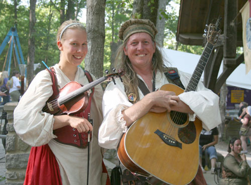 A young duo with ancient Gypsy and Celtic roots. Fiddler Lauren Mahlerox and the adventurous guitar player Ky Hote present a feast of instrumentals and songs. Their much heralded premier Tennessee Renaissance Festival in 2007 had fans clamoring for a debut recording immediately. They were the featured performers at the Royal Court Dances as well as impressing audiences throughout the faire. The standard repertoire sounds fresh in their hands. Fantasies of Eastern Europe and minstrels passing through town infect the minds of patrons and vendors alike who chance upon them walking down the lane. Their musical wanderings are well arranged and appropriate for any scenario.