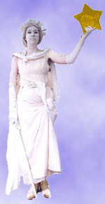 Still as an icon, she stands until someone makes a wish with a coin and
